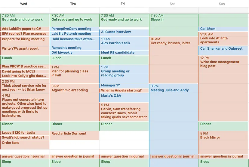 - Make every task you would like to do — including meetings, “to-do’s”, doing nothing, watching Game of Thrones — a calendar entry.