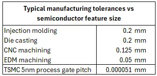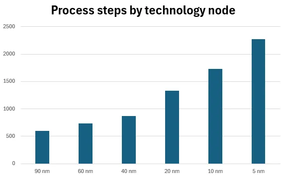 On its own, a large number of process steps wouldn’t require $20 billion manufacturing facilities. After all, many complex manufactured goods require as many or more steps to produce. An early 20th century watch, for instance, consisted of 150 parts that required over 3700 operations to produce.