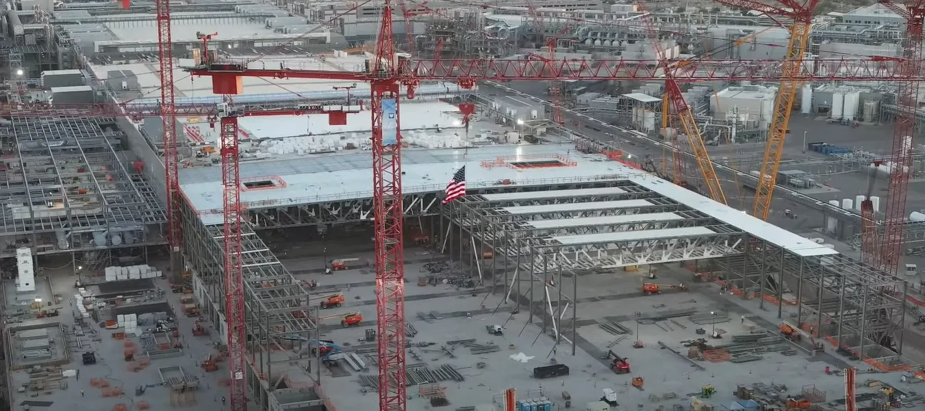 A large fab will have hundreds of thousands of square feet of cleanroom, and the facility might be spread over hundreds of acres. Building it requires tens of thousands of tons of structural steel, and hundreds of thousands of yards of concrete. Intel boasts that its fabs use twice the concrete as the Burj Khalifa, and five times the metal used in the Eiffel Tower.